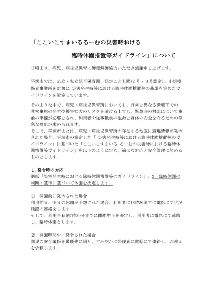病児保育ではお子さまの安全を第一に保育看護を行っております。気象状況が悪く警報が発令された場合、地震が発生した場合以下の通り対応をとらせていただきます。御理解と御協力の程よろしくお願いいたします。