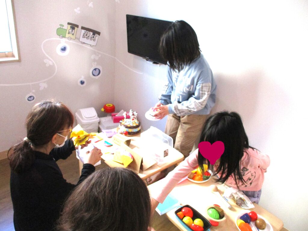 開店とともにここいこの仲間が遊びに来てくれました。保育士、看護師が手に持っているのは手作りのお金です‥金額はなんと「1000000えん!」たくさん買い物が出来そうですね😊